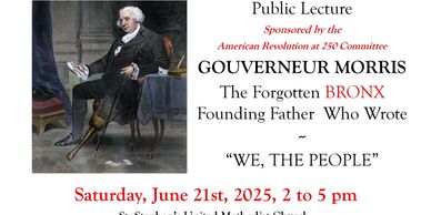 Presentations included Tim Schantz on Gouverneur Morris and the Morrisania Project for recognition of the Morris grave site at St. Ann's Church in the South Bronx. A video tour by Anthony Bonilla of St. Ann's Church. Readings by Jonathan Krup and Dikran Tulaine of the Preamble of the Constitution, the Morris speech condemning slavery, and the Declaration of Independence.